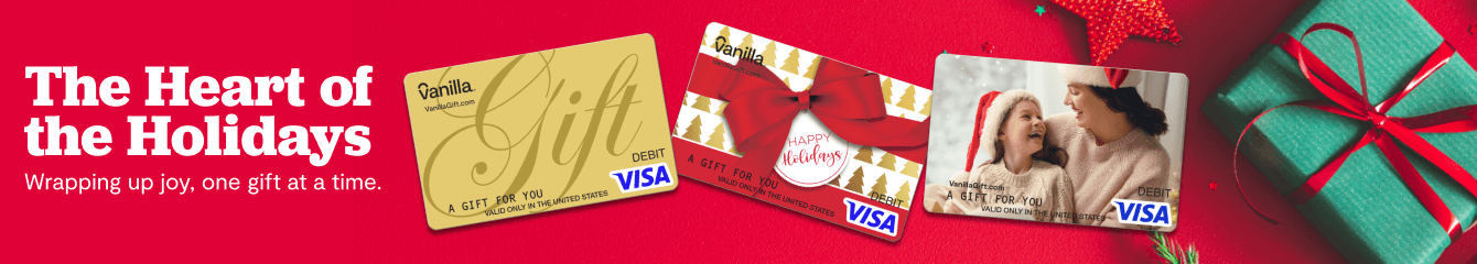 Wrap the gift of pure delight this season. Vanilla® Visa® holiday gift cards are a thoughtful and warm way to celebrate. These options are a wonderful option for all those who you hold dear, with styles that honor tradition and call to mind special memories. With Vanilla® Gift Cards, the recipient can choose to spend on an item they’ve been wishing for or an experience they’ll never forget. Shop Vanilla Visa® holiday cards for uplifting gifts and magical moments.